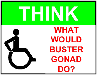 (Buster Gonad is a character from Viz Comic. He has unfeasibly large testicles. Here's his real-life counterpart. [That last link is NOT work-safe and it might harm those with weak constitutions.])